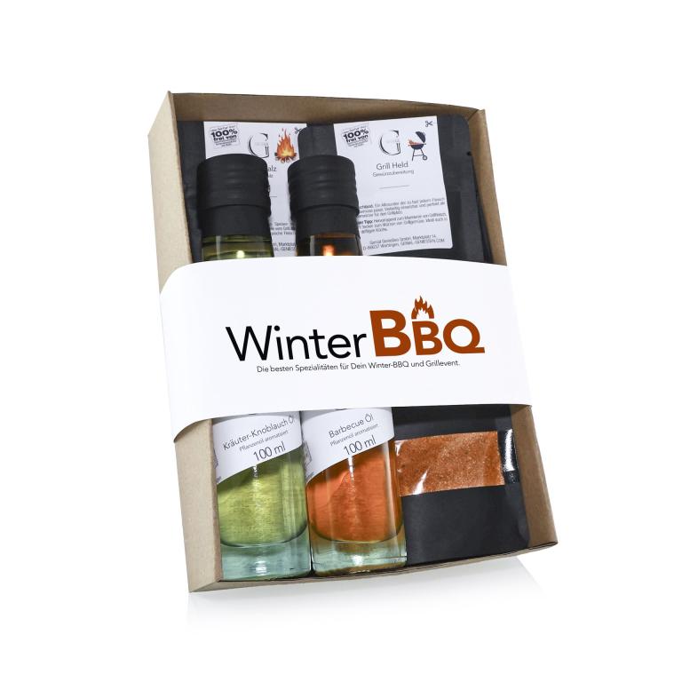 Mit diesem schön zusammengestellten Barbecue Set hast du das perfekte kleine BBQ Geschenk oder Mitbringsel für eine Einladung zum Winter-Grill-Spaß: herzhafte Öle zum Würzen und verschiedene Grillgewürze zum Verfeinern.